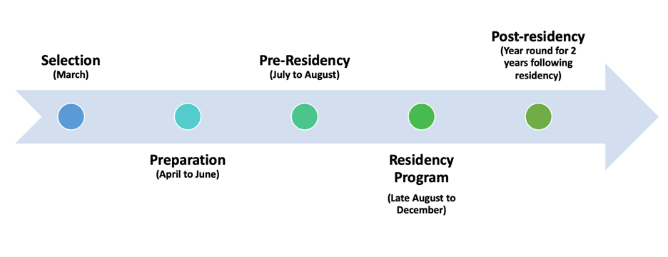 - Post-residency (in home country): During the two-year post-residency period, the CUE team provides targeted support to alumni as they implement impact plans that build off their research. Through strategic advisement, group working meetings, and leadership development support, scholars leverage the knowledge, skills, and connections built throughout the fellowship to catalyze change in their local contexts.