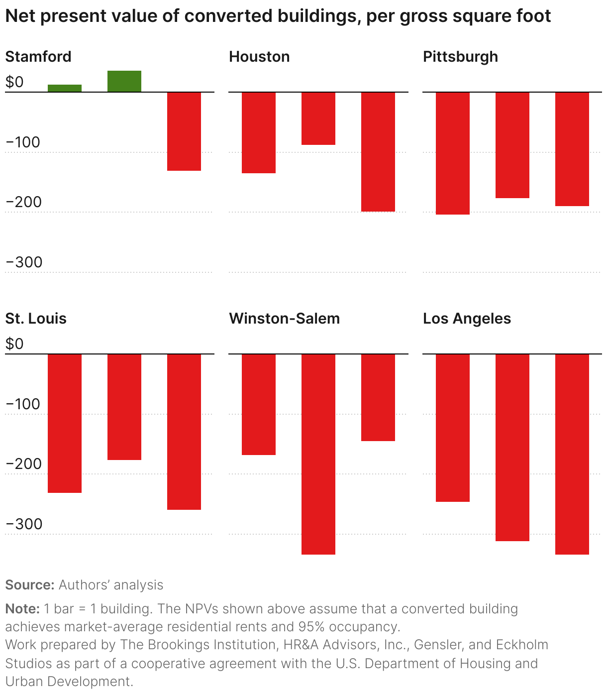 This publication is part of a broader series examining the potential of office-to-residential conversions across six U.S. case studies. The project is part of a cooperative agreement with the US Department of Housing and Urban Development, and the research team is composed of contributors from Gensler, HR&A Advisors, Brookings, and Eckholm Studios.