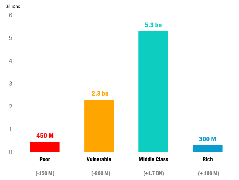 Number of people who are poor, vulnerable, middle class, and rich worldwide