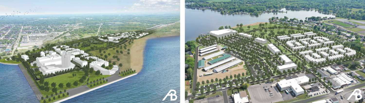 Renderings to increase public access to waterfronts in Michigan City and Warsaw, Ind. | Photo credit: Anderson + Bohlander