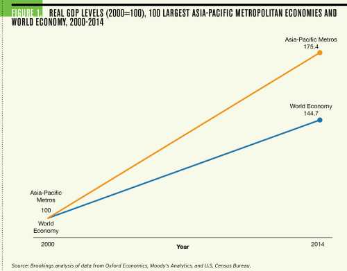 - The 100 largest metropolitan economies in the Asia-Pacific region together accounted for 20 percent of global GDP and 29 percent of global GDP growth in 2014. They are some of the fastest-growing economies in the world, registering 3.5 percent output growth, 2.6 percent GDP per capita growth, and 1.5 percent employment growth in 2014, outpacing global averages.