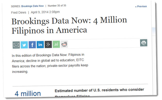 In this edition of Brookings Data Now: Filipinos in America; decline in global aid to education; EITC filers across the nation; private-sector payrolls keep increasing.