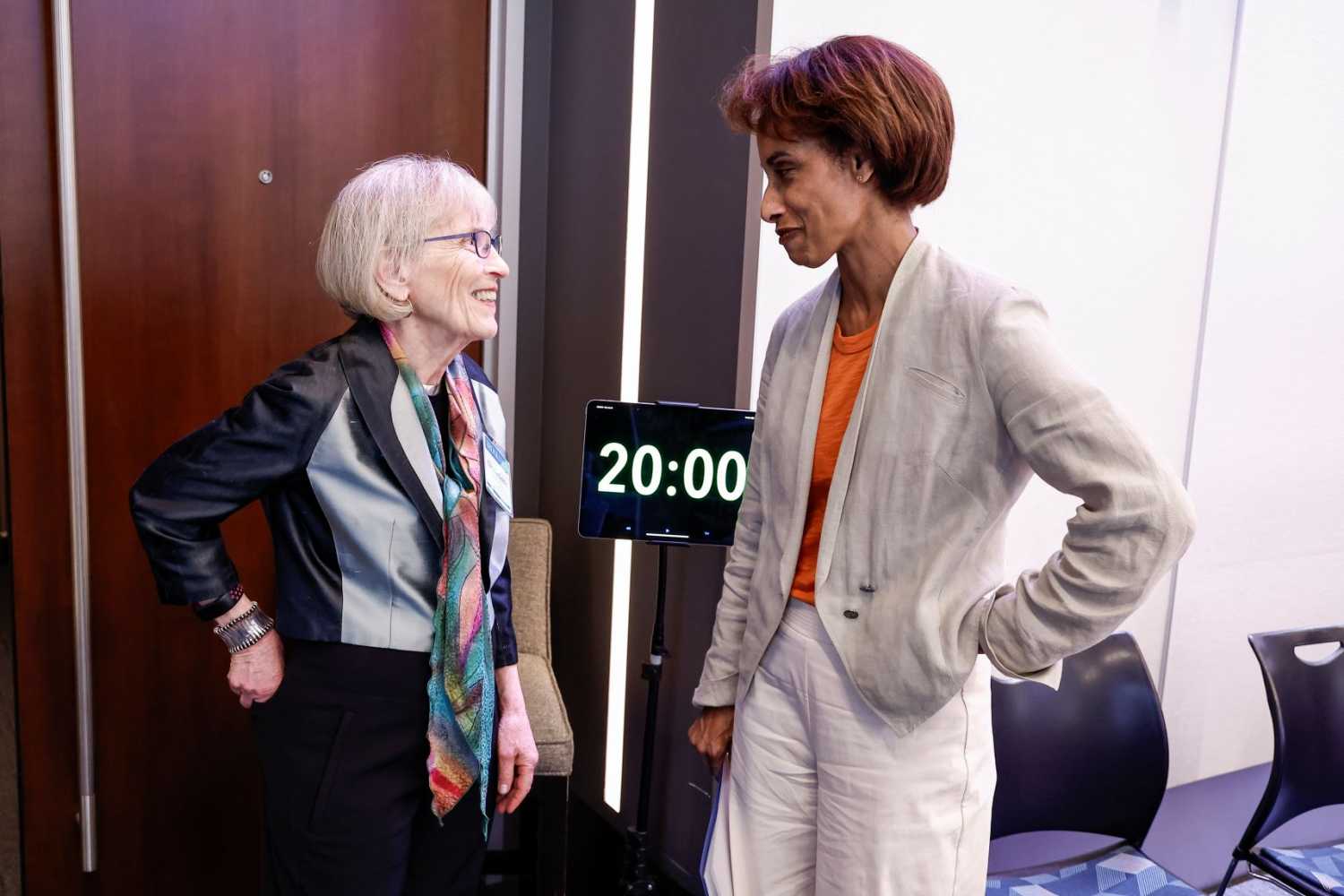 Moderator Tara McGuinness, founder and executive director of the New Practice Lab, sat down with Ai-Jen Poo, president of the National Domestic Workers Alliance, for a keynote fireside chat. They discussed the essential nature of care jobs, the influence of culture on the treatment of caregiving jobs in the economy, and highlighted the questions: What is the cost of inaction on the care economy? And what happens if we invest in care?
