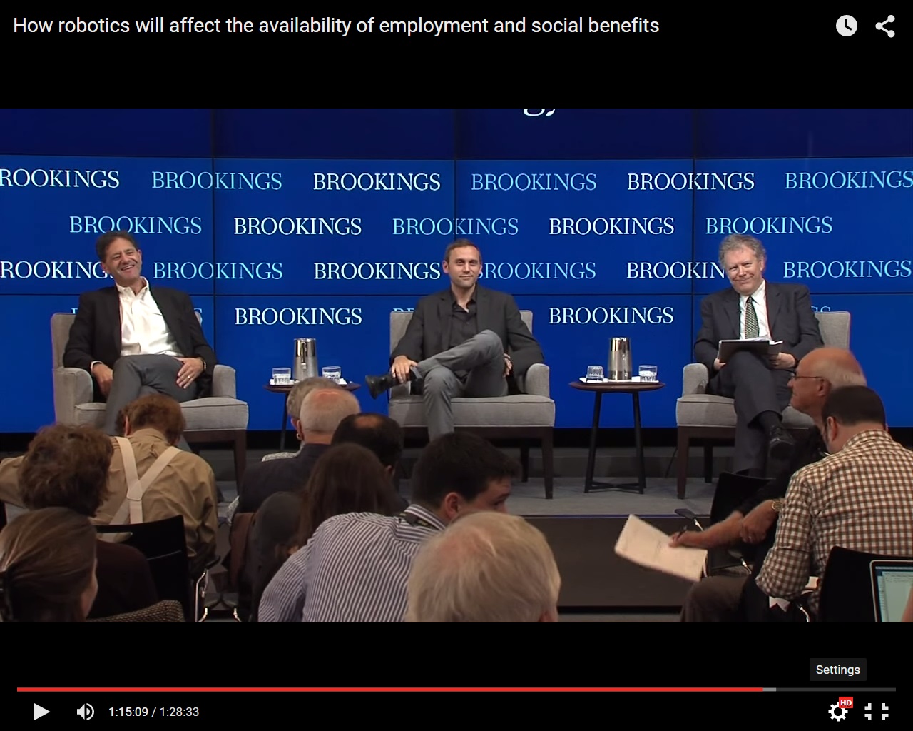 On October 26, the Center for Technology Innovation hosted a panel discussion about the future of social benefits if automation technologies dramatically reduce the demand for human labor. Panelists included CTI’s Darrell West, who authored a new paper on the subject, Nick Hanauer of Second Avenue Partners, and Scott Santens of Basic Income Action.