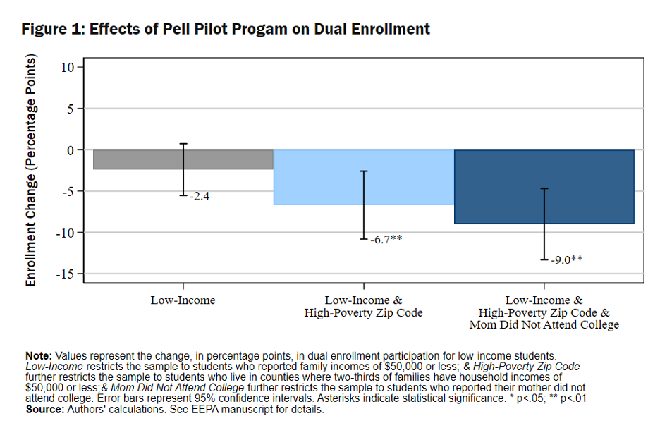 In a recent article published in Educational Evaluation and Policy Analysis (EEPA), we show that this program not only failed to increase low-income students’ access to dual enrollment but may have actually decreased access. Despite the good intentions behind the program, it created new barriers to dual enrollment for colleges and families. These unintended consequences offer important lessons for policymaking.