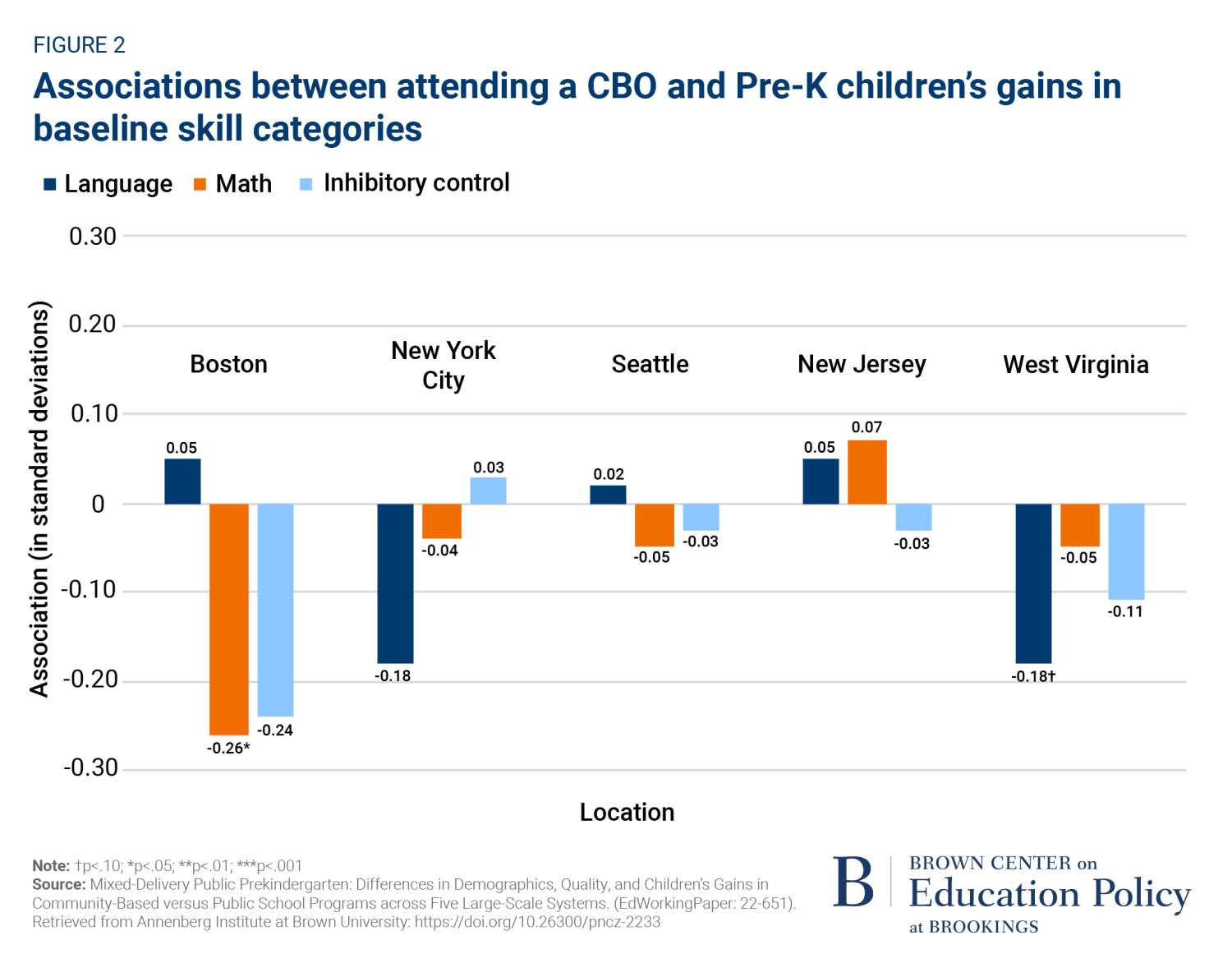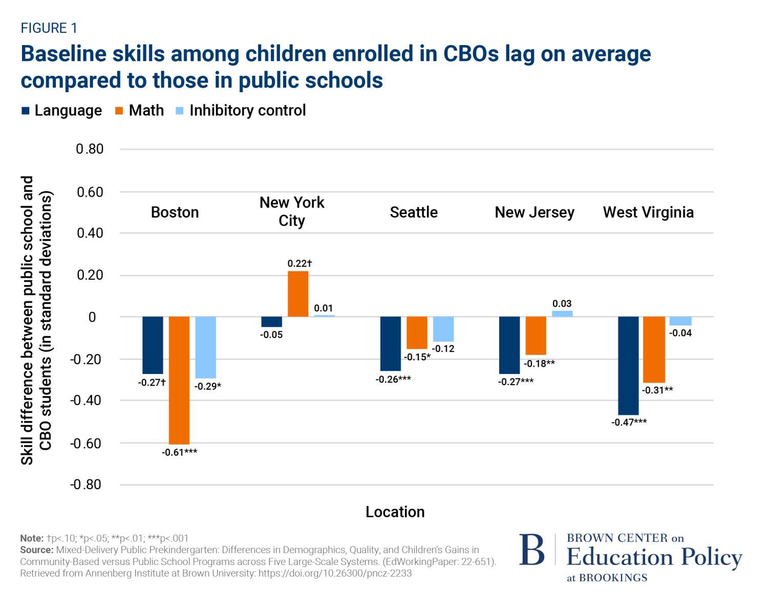 To be sure, more research on this topic is needed, including studies on additional localities and with stronger designs. For example, studies that randomly assign children to CBO and public school-based programs are needed to identify the causal effects of setting. Although our study is descriptive, our findings do shine new light on a persistent problem. Even within systems that should be commended for taking explicit steps to improve equity—systems that in many ways have been leaders nationally in expanding access and improving quality—important differences in quality and children’s learning have persisted across settings.