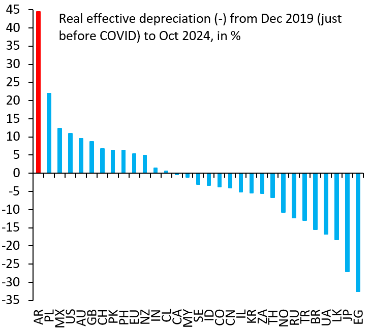 Figure 2. Real effective depreciation, December 2019 to October 2024