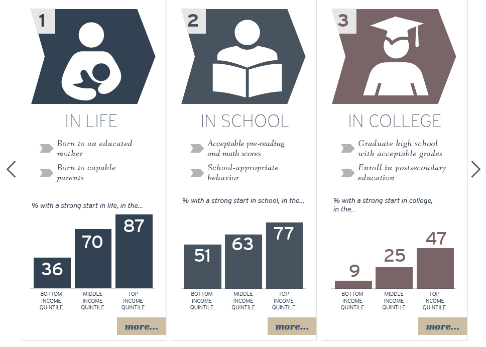 At every one of these starting gates, there are large gaps between those born to the bottom, middle, and top income quintiles. During the Summit, we’ll be talking with experts in each life stage to explore policy solutions that will narrow these opportunity gap, and help as many Americans get as many strong starts as possible. We invite you to explore the components of the 5 Strong Starts in our interactive brief, and to follow the day’s events on Twitter, where @BrookingsCCF will have updates throughout the day using #MobilitySummit.