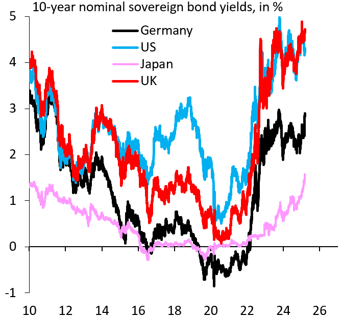 Figure 1. 10-year nominal sovereign bond yields, in %