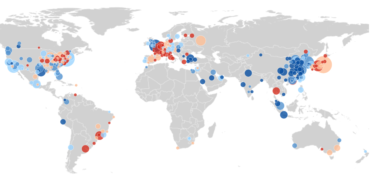 With only 20 percent of the population, the world’s 300 largest metropolitan economies accounted for nearly half of global output in 2014. This interactive and report compare growth patterns in the world’s 300 largest metro economies on two key economic indicators—annualized growth rate of real GDP per capita and annualized growth rate of employment. These indicators, which are combined into an economic performance index on which metro areas are ranked, matter because they reflect the importance that people and policymakers attach to achieving rising incomes and standards of living and generating widespread labor market opportunity.