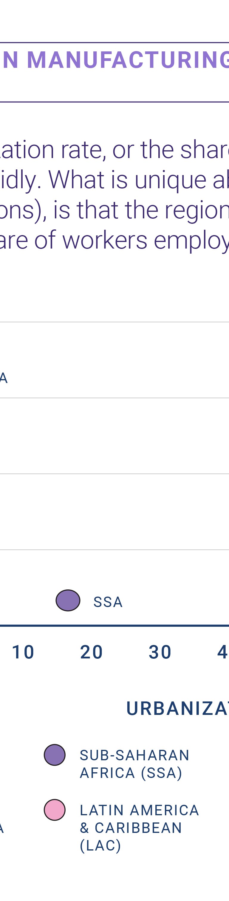 Urbanization has taken place without structural transformation with the share of employment in manufacturing in sub-Saharan Africa far below South Asia, even though South Asia has a lower urbanization rate.