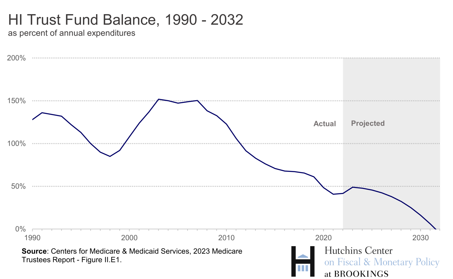 Trust fund depletion could be prevented by raising revenues or cutting spending. Measures that reshuffle costs out of Medicare Part A and into other parts of Medicare, or that allocate existing government revenues into the HI trust fund, could also extend the fund’s longevity without directly changing overall government revenues or expenses.