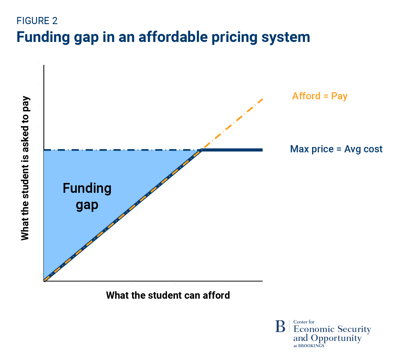 - The actual size of the funding gap is determined by the difference between average expenditures per student, the amount students can afford to pay, and the distribution of students in the amount they can afford to pay. In essence, a third dimension is required representing the distribution of affordability across students. For simplicity, Figure 2 ignores this third dimension to simplify the point that there is a funding gap in the framework presented.