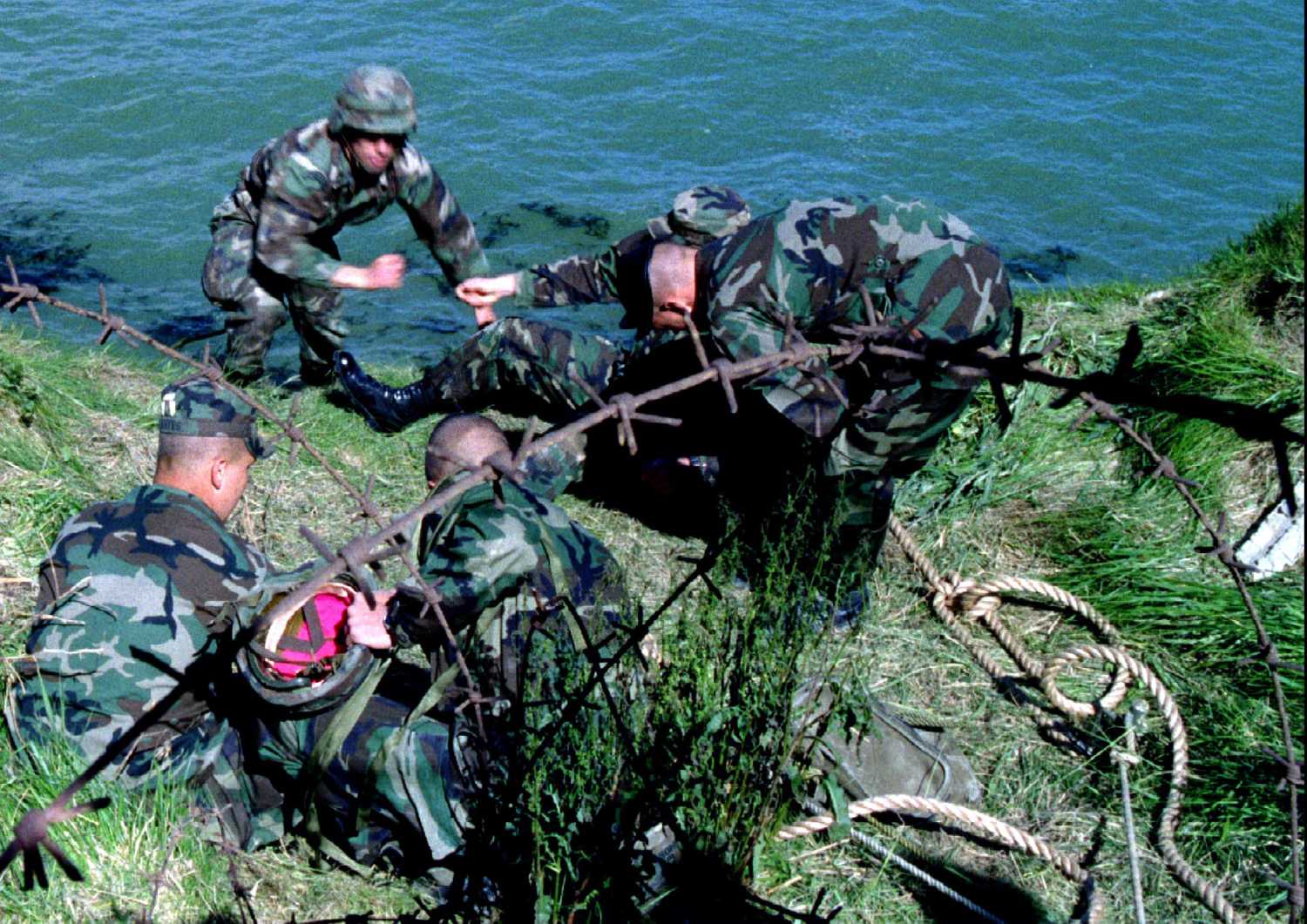 “Behind me is a memorial that symbolizes the Ranger daggers that were thrust into the top of these cliffs. And before me are the men who put them there. These are of boys of Pointe du Hoc. These are the men who took the cliffs. These are the champions who helped free a continent. And these are the heroes who helped end a war.”