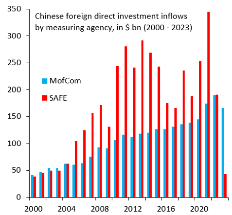 Figure 5. Chinese foreign direct investment inflows by measuring agency, in $ bn. (2000-2023)