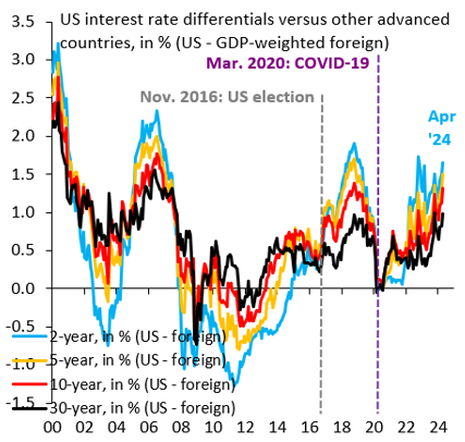Figure 5. US interest rate differentials vs. other advanced countries, in % (US – GDP weighted foreign)
