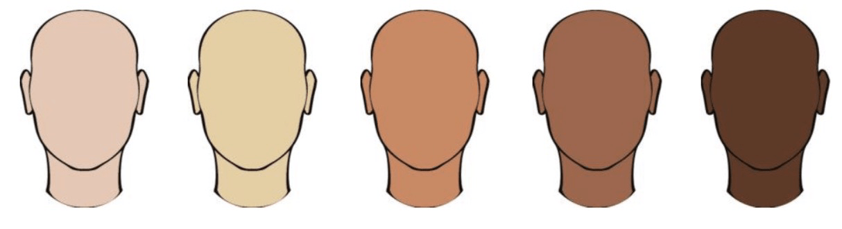 To compare the commentary to the skin tones of the players, we collected pictures of each of the over 400 players from basketball rosters and university websites. Next, we tasked over 2,000 respondents to evaluate the skin tone and race of each player using a skin-tone scale and racial categories. We categorized players into five main skin-tone quintiles (as shown in the graph below).