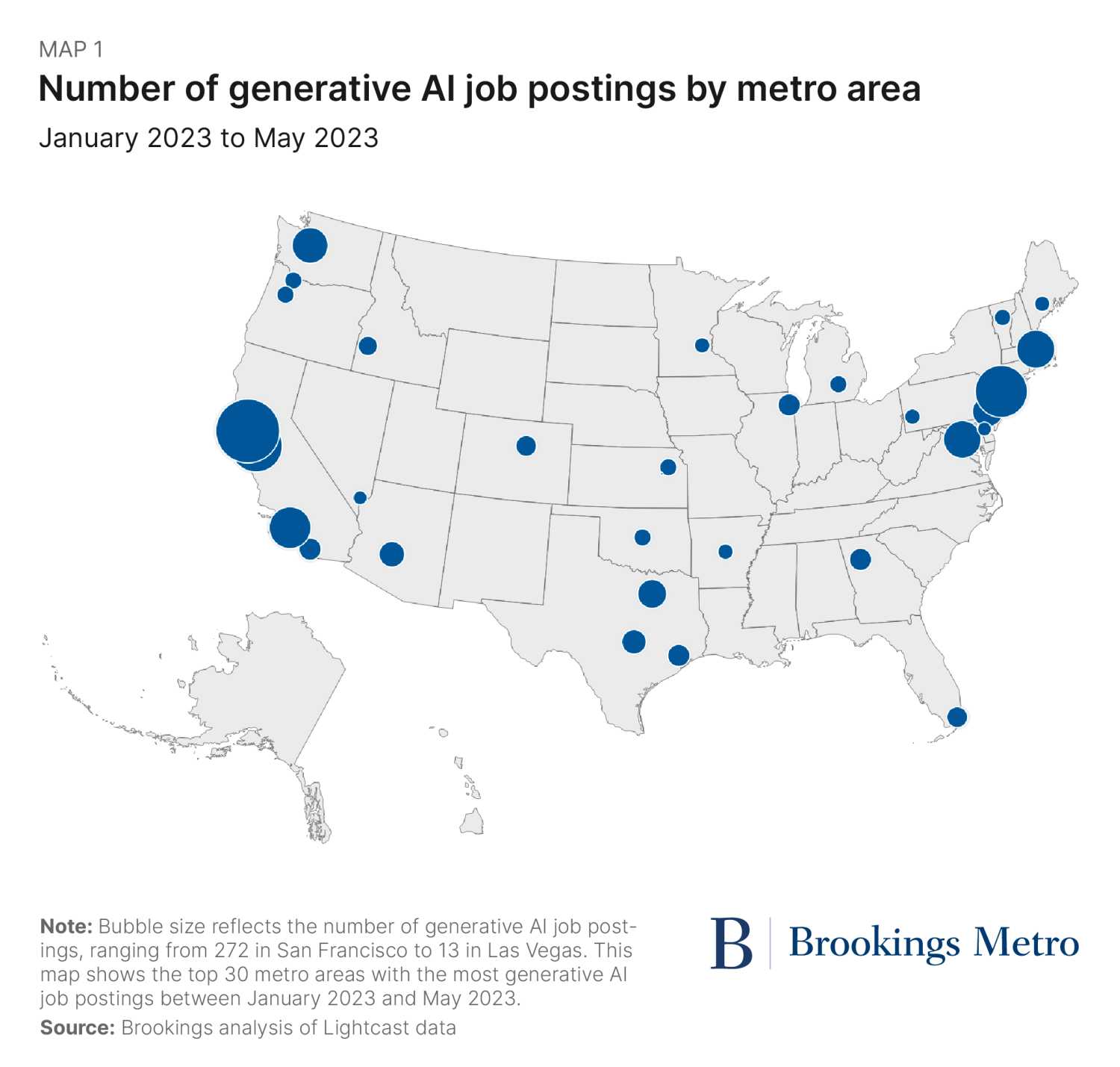 But as this new data on generative AI job postings shows, the winner-take-most dynamics of the digital sector’s past may also be prologue for AI. In which case—and really, in either case—the nation, states, and localities must act now to broaden the reach of AI’s development and secure its benefits for more people in more places.