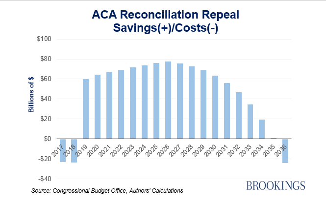 [1] Supposing that the budget savings in the reconciliation ACA repeal bill are saved to help pay for replacement rather than transferred into the HI Trust Fund, as the 2016 bill does.