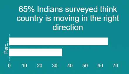 First, Prime Minister Modi’s popularity remains very high at 81 per cent. But what is more unexpected is that a far higher number of Indians think the state of the Indian economy is good: 80 per cent compared with 74 per cent in 2015 and 64 per cent in 2014. Additionally, far more Indians believe that the country is moving in the right direction: 65 per cent this year compared with 56 per cent in 2015 and 36 per cent in 2014. Despite all the justifiable frustrations with the pace of change among many commentators, the government should be heartened by these findings – although they should not lead to complacency.