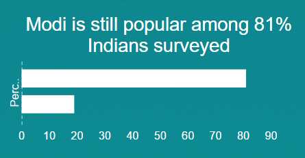 For this reason, the recently-released public opinion survey by the Pew Research Center is important. Unlike most surveys, Pew conducts face-to-face interviews with some 2500 people from across India each year. This makes their results a much more accurate reflection of Indian public sentiment than, say, spot polls conducted online or surveys done only in major metropolitan centres. For example, unlike many others, Pew accurately predicted Narendra Modi’s landslide electoral victory in 2014.