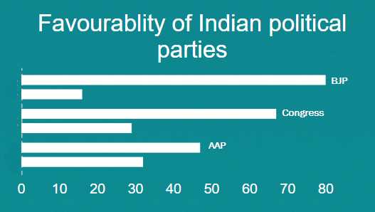 The second surprise concerns the popularity of political parties and their leaders. Public views of the BJP and Congress are generally favourable. 80 per cent have a favourable view of the BJP in contrast to 16 per cent who do not, while 67 per cent like the Congress party compared with 29 per cent who do not. But the numbers for the insurgent Aam Aadmi Party (AAP) are far less encouraging, with 47 per cent in favour and 32 per cent against.