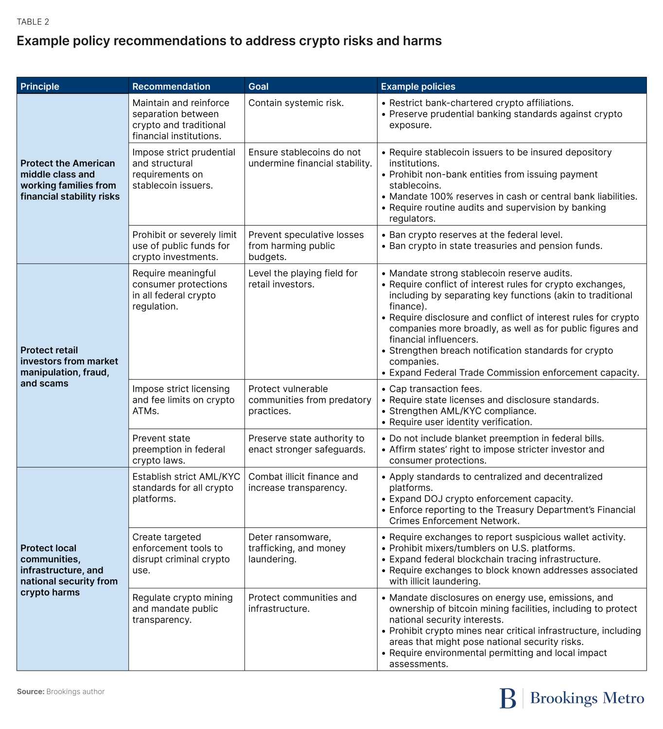 To prevent such an outcome, lawmakers need to take these potential mid- to long-term risks seriously by incorporating appropriate safeguards that maintain and reinforce the separation between crypto and traditional financial institutions, ensuring that banks and retirement systems are not overexposed to volatile cryptocurrencies. They should also consider preventing the use of state or federal funds to purchase or hold cryptocurrencies. These are not inconceivable concerns—they are growing risks that could upend the financial stability of millions of families if left unaddressed.