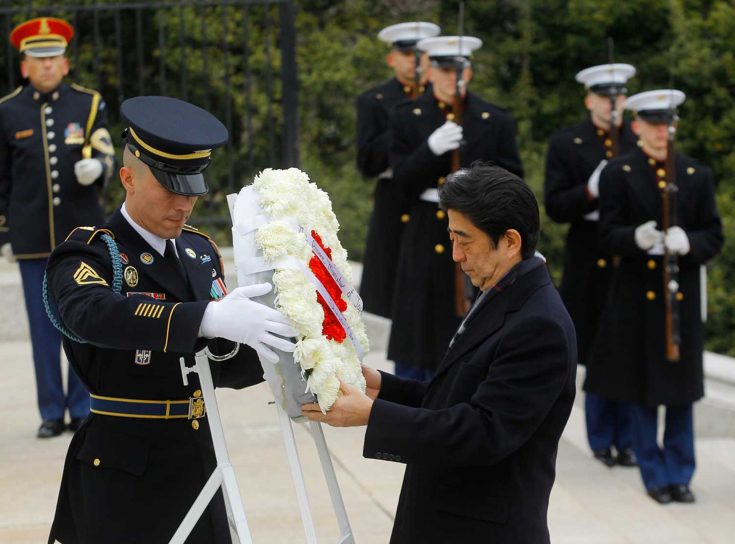 Japan’s prime minister, Shinzo Abe, made the rounds of Washington today (February 22nd). He laid a wreath at Arlington National Cemetery (implicitly honoring those who lost their lives fighting Imperial Japan in World War II). He and President Obama had a full discussion of security and economic ties. And late this afternoon, Abe spoke at the Center for Strategic and International Studies.