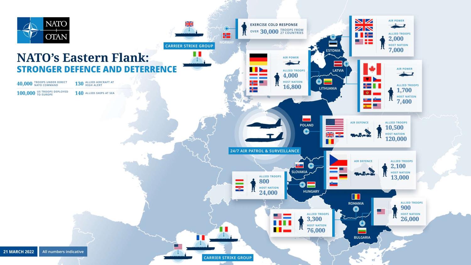 NATO has already been adjusting, of course. In the early months of 2022, the United States has added roughly 20,000 troops to the 80,000 who were previously in Europe.