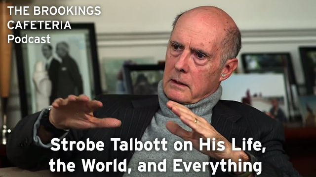Brookings President Strobe Talbott reflects on growing up in Cleveland, his career—as a journalist, State Department Official, and think tank leader—and today’s challenges for governance and stability. Learn how a career in journalism prepared him for State Department diplomacy; about his role in defusing two international crises in one dangerous week in June 1999; what he thinks about Vladimir Putin and Russia’s course; and why nuclear proliferation and climate change are “existential threats.” And also listen to his reflections on Brookings’s centenary next year.