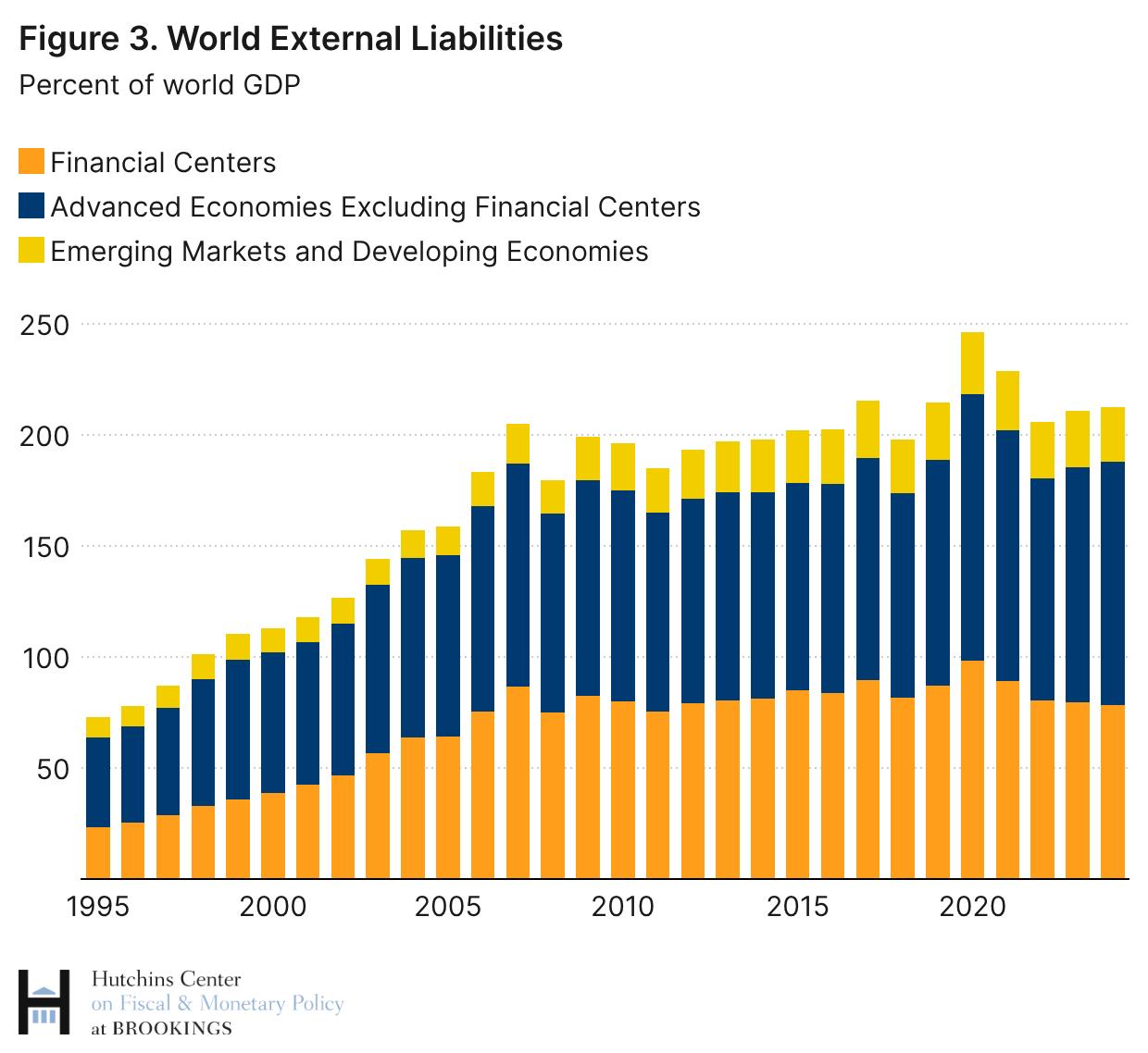 With rising geopolitical tensions, there is growing interest in their repercussions for international financial flows and investment patterns (see, for instance, the 2025 Geneva Report). The database also allows us to examine the global evolution of gross cross-border positions over time. As shown in Figure 3, global liabilities have risen slightly between the end of 2023 and the end of 2024 as a share of global GDP.