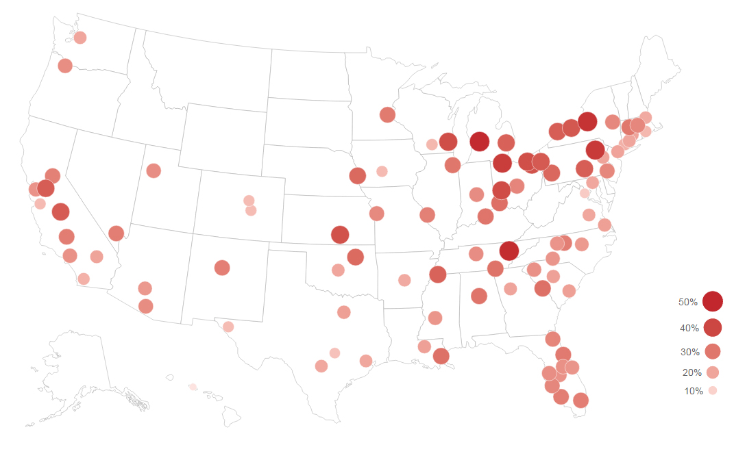 The metropolitan findings demonstrate the wide variation that exists in the extent to which disadvantages cluster across places, but disparities exist within metropolitan areas as well, both in the share of residents facing multiple disadvantages and in the types of disadvantages most prevalent.