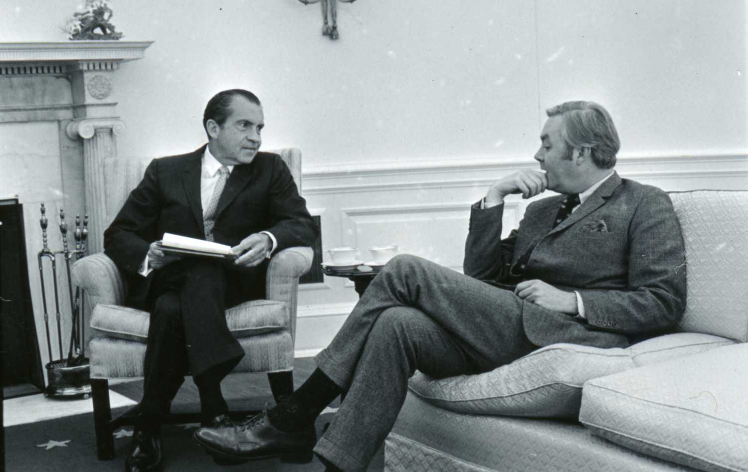 Nixon gives little gifts, things with a presidential seal, repeats jokes he has told many times, and tries small talk. This is not what he does best.