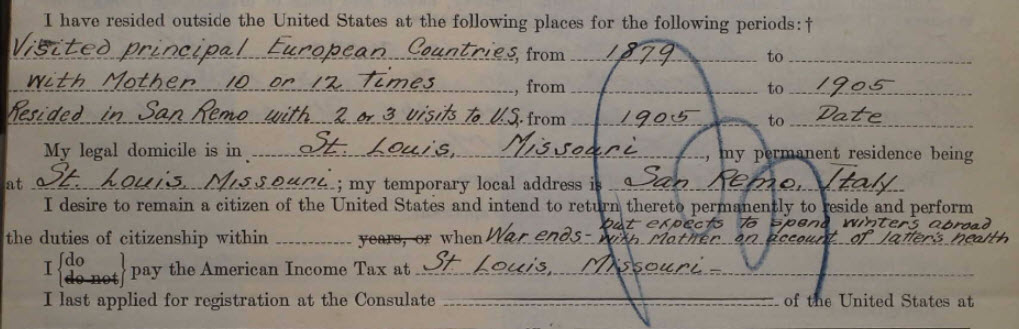 Isabel January’s philanthropy and service started to become more apparent during this period, even as the Great War erupted across Europe. Isabel and her mother seem to have remained in San Remo during the conflict. The same month as her consular application, January 1917, Isabel was recognized by the Italian Red Cross, and was cited by the British Red Cross Society and Order of St. John of Jerusalem in England “for valuable service rendered during the war, 1914 to 1919.”[10] And, in February 1919, she was awarded with a lifetime membership in the American Red Cross. She and her mother also contributed to stateside fundraising campaigns during the war. Grace subscribed $10,000 to St. Louis Liberty Bonds raised during opening game of the 1918 season between the Cardinals and Chicago Cubs (no, she didn’t attend the game, but contributed through the campaign’s Women’s Metropolitan Division), and both she and Isabel gave $2,500 to the United War Work campaign of St. Louis near the war’s end.[11]