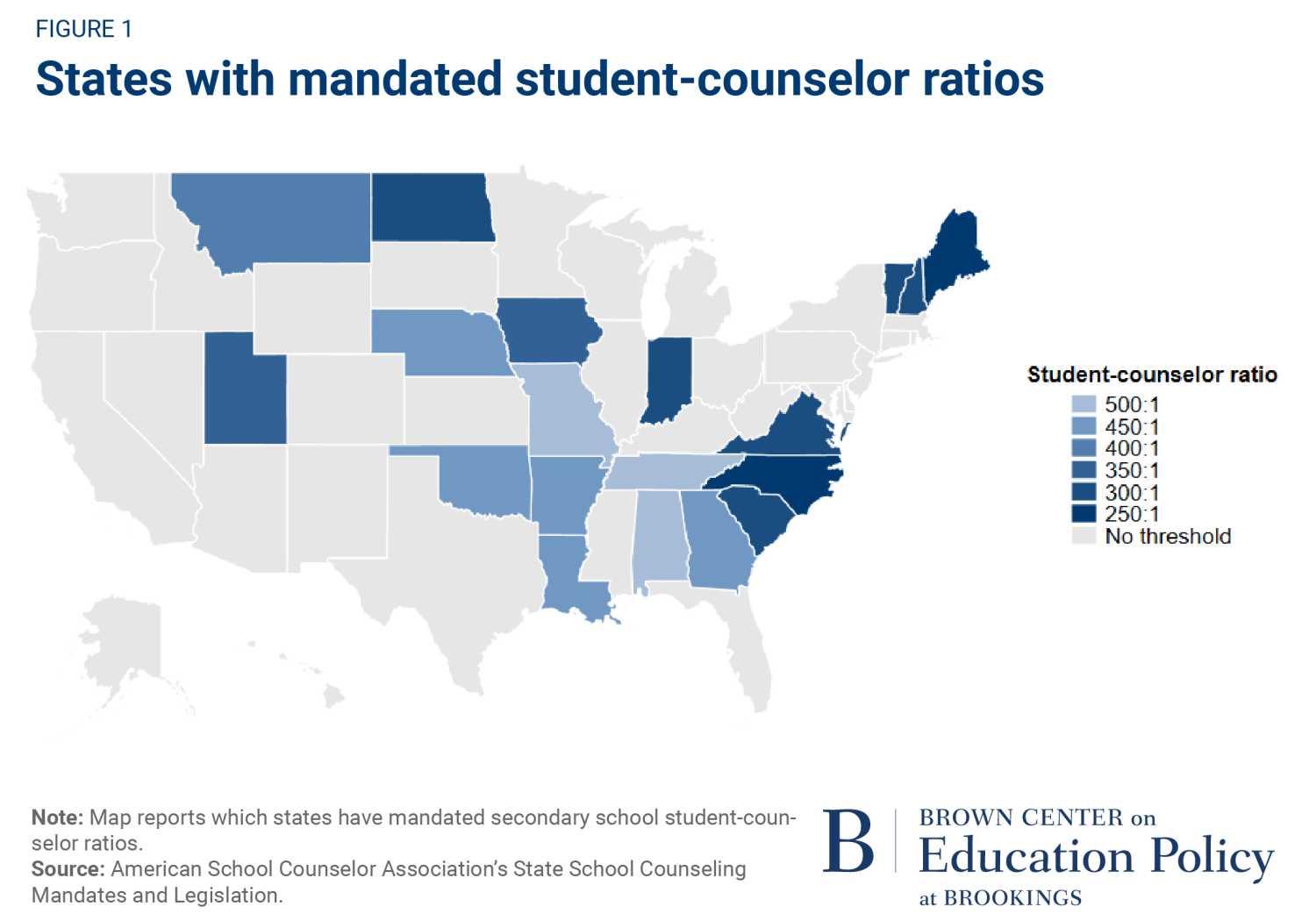 Despite a growing research consensus that counselors matter, we still know comparatively little about the distribution of counseling across schools and students, and what policies drive students’ access to quality counselors. To examine the national high school counselor landscape, we leverage the 2017-18 Civil Rights Data Collection and data from the American School Counselor Association (ACSA) on state counselor staffing policies to outline the landscape of counselor policies in theory and in practice.