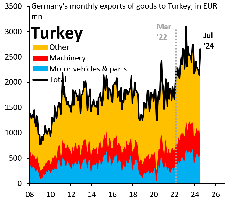 Figure 4. Germany’s monthly exports of goods to Turkey, in millions of euros