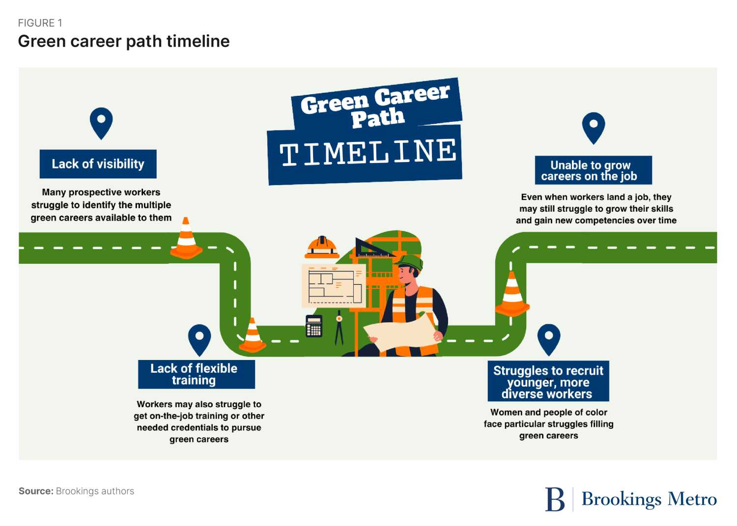 - Educational entities: Community colleges, universities, and other postsecondary institutions are also on the front lines of preparing students and workers for green careers. Direct collaboration with infrastructure employers, including internship programs, can create links for on-the-job training and job placement. But these educational institutions also need to focus on more extensive skills-based preparation for green careers, including developing new green curricula and supporting new green credentials.