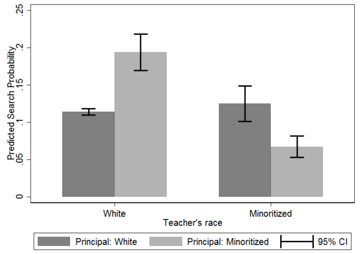 Figure: Marginal probabilities (effects) of searching in the labor market based on principal-teacher race congruence
