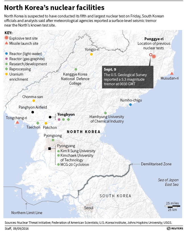 Even in the absence of a technical assessment of the test results, some facts are already clear. For one, this is the first time that North Korea has tested twice in one year (its previous test was in January, when Pyongyang claimed to have successfully tested a thermonuclear weapon, but that’s widely doubted). Until now, its tests have on average occurred about every three years. Today’s test had an estimated yield of approximately 10 kilotons, appreciably larger than the four previous nuclear detonations.