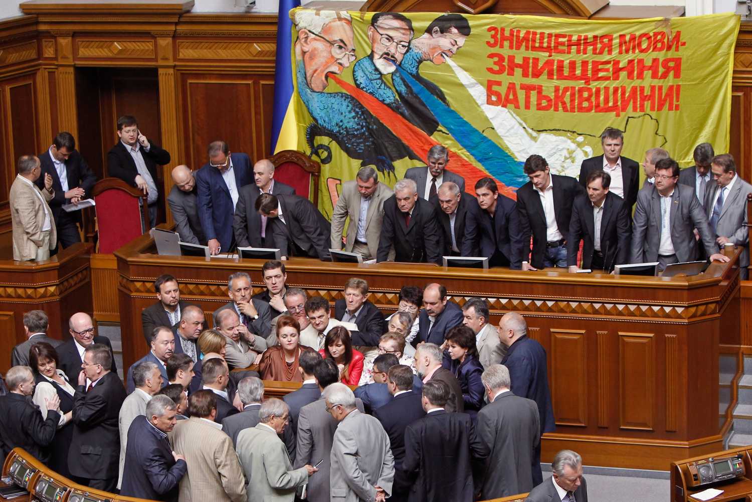 Dyakuyu or Spasibo? The controversy over whether Russian should be recognized as an official language of Ukraine is so heated that it has compelled Ukrainian politicians to tear each other’s clothes, flip parliamentarians over bannisters, and recently provoked the speaker of parliament to tender his resignation