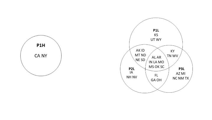 There was a lone high protection solution (P1H) in Democrat-leaning states with high income and high poverty rates (high income inequality). California and New York epitomize these cases.