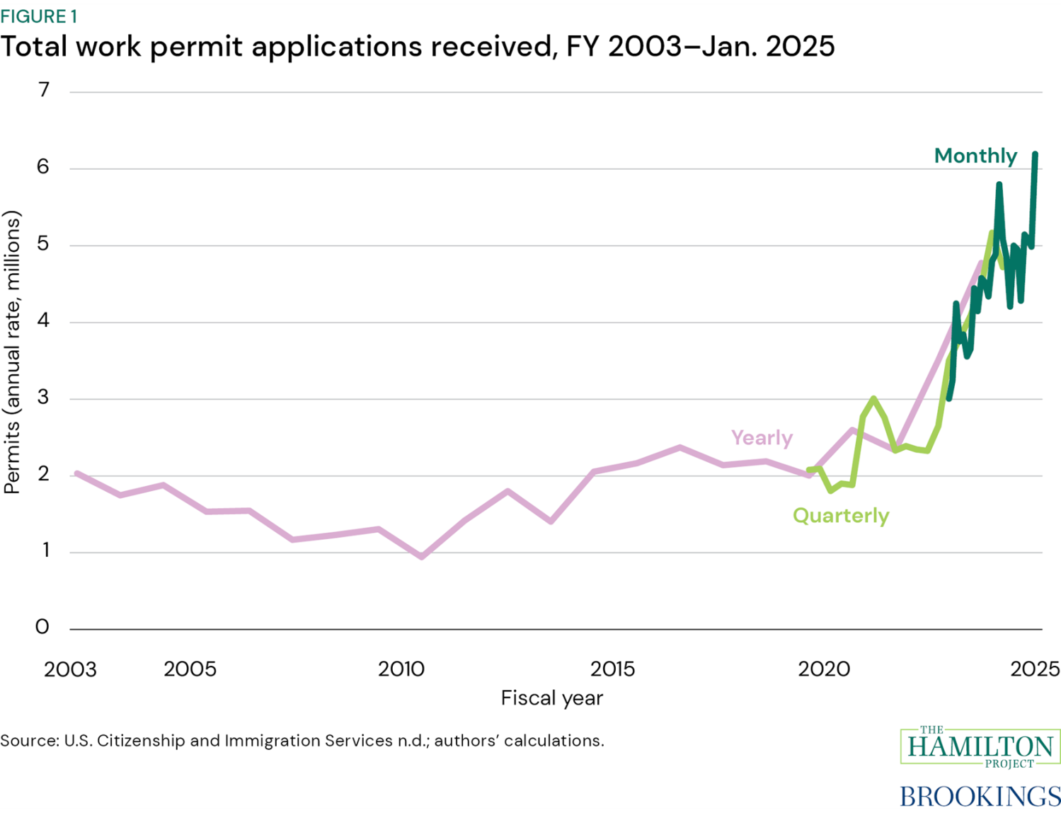 This analysis was published in full on March 13, 2025, with work permit data through January 2025. For the most recent work permit data, see this tracker.