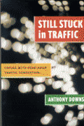 Congested roads waste commuters’ time, cost them money, and degrade the environment. Most Americans agree that traffic congestion is the major problem in their communities—and it only seems to be getting worse. In this revised and expanded edition of his landmark work Stuck in Traffic, Anthony Downs examines the benefits and costs of various anticongestion strategies. Drawing on a significant body of research by transportation experts and land-use planners, he counters environmentalists and road lobbyists alike by explaining why seemingly simple solutions, such as expanding public transit or expanding roads, have unintended consequences that cancel out their apparent advantages. He argues that while there might be some measurable gains from increasing housing densities, most other land-use strategies have little effect. Indeed, the most powerful solutions, including higher gasoline taxes, increased public funding for transit, and highway tolls, are also the least palatable politically. St ill Stuck in Traffic contains new material on the causes of congestion, its dynamics, and its relative incidence in various parts of the country. In clear and realistic terms, Downs seeks to explore why traffic congestion has become part of modern American life and how it can be kept under control.