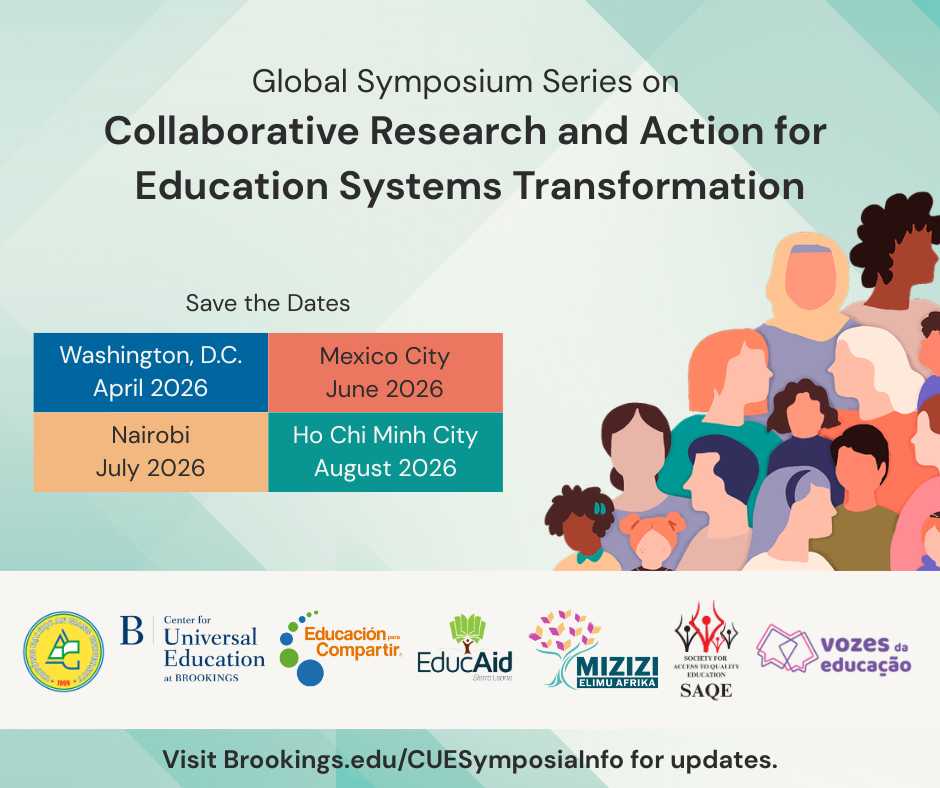 For more than two decades, the Center for Universal Education (CUE) at the Brookings Institution has worked with partners across the globe to advance education policy and practice, by supporting locally driven knowledge creation, promoting research-to-action pathways, and catalyzing systems transformation. This work has reinforced a hopeful insight: When research is shared, power is distributed, and learning is collective, more relevant and lasting change is possible.