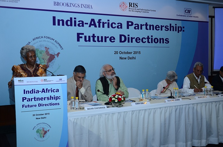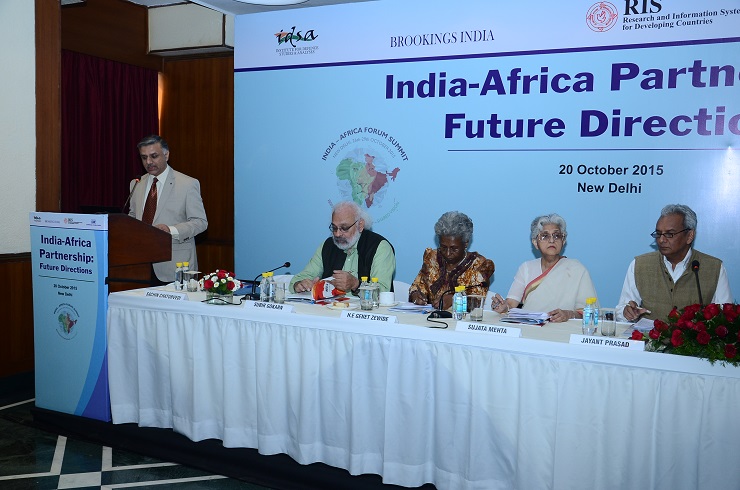 In anticipation of the 3rd India-Africa Forum Summit to be held in New Delhi 26-29 October 2015, Brookings India in collaboration with RIS, Institute of Defence Studies and Analysis (IDSA), and Confederation of Indian Industry (CII) jointly hosted a day-long conference to facilitate engagement on various dimensions of the India-Africa relationship. The objective of the conference was to lay the foundation for structured engagement between India and Africa on broad areas of trade and investment, technology, capacity building, infrastructure and geostrategic interests.