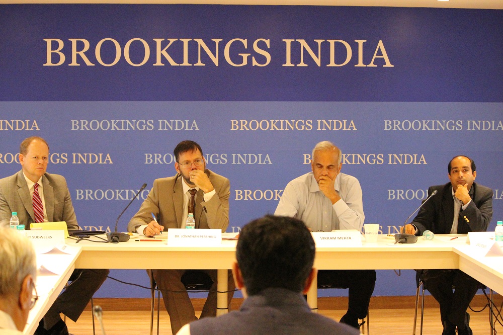 Brookings India is actively involved in the analysis of RE, as well as multi-stakeholder discussions on the same, Chairing the Working Group on Policy under the multi-stakeholder Clean Energy Finance Forum. On September 1, 2016, Brookings India hosted Dr. Jonathan Pershing, the U.S. Special Envoy for Climate Change, for a multi-stakeholder roundtable discussion on clean energy and climate change in India. Special Envoy Dr. Pershing was in India as part of the Indo-US Strategic and Commercial Dialog (S&CD). Dr. Jonathan Pershing was joined by his team United States government (USG), and industry leaders from the U.S.-India Business Council, as well as Indian industry leaders from the financial/banking sectors and project developers.