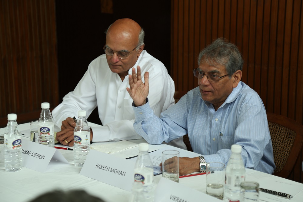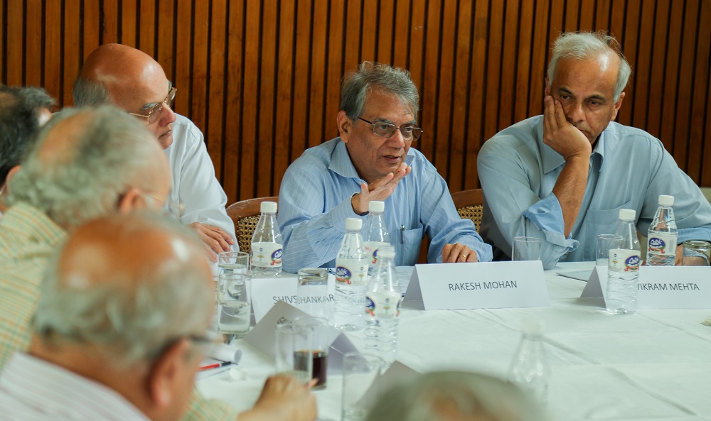 As part of a regular private roundtable discussion series on Foreign Policy, Brookings India hosted a discussion on Developments in the Global Economy: How do they Impact the India Growth Story. The discussion featured Dr. Rakesh Mohan, Distinguished Fellow at Brookings India and former Executive Director for India to the IMF and Deputy Governor of the Reserve Bank of India. The discussion was moderated by Ambassador Shivshankar Menon, Distinguished Fellow in Foreign Policy at Brookings and India’s former National Security Advisor and Foreign Secretary.
