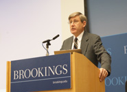 | Martin Baily giving introductory remarks. | Ben Klemens speaking on economic perspectives. |