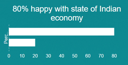 First, Prime Minister Modi’s popularity remains very high at 81 per cent. But what is more unexpected is that a far higher number of Indians think the state of the Indian economy is good: 80 per cent compared with 74 per cent in 2015 and 64 per cent in 2014. Additionally, far more Indians believe that the country is moving in the right direction: 65 per cent this year compared with 56 per cent in 2015 and 36 per cent in 2014. Despite all the justifiable frustrations with the pace of change among many commentators, the government should be heartened by these findings – although they should not lead to complacency.